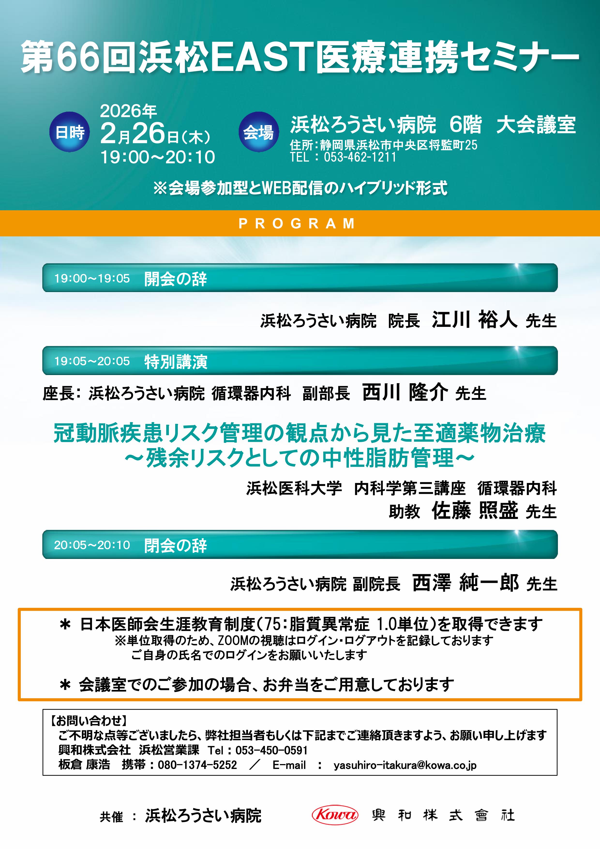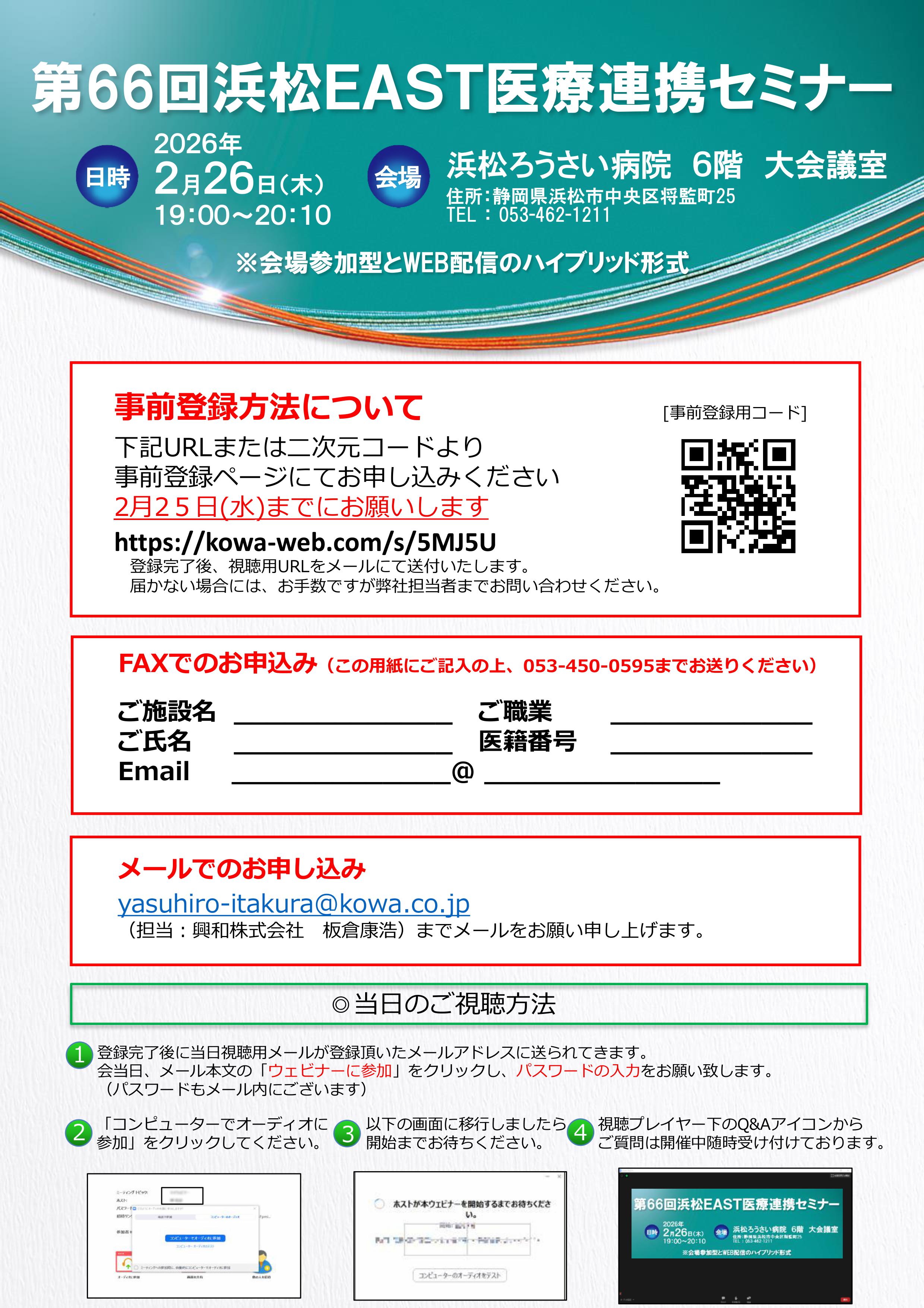 - 第65回浜松EAST医療連携セミナーを開催いたします